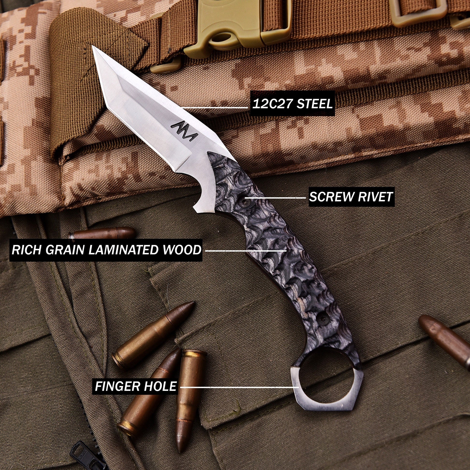 With a total length of 9 inches and a 4.5-inch blade, the AM Sentinel is compact yet fierce. It’s more than a knife—it's a symbol of resilience and readiness. Whether strapped to your gear or worn at your side, it’s always ready for action.