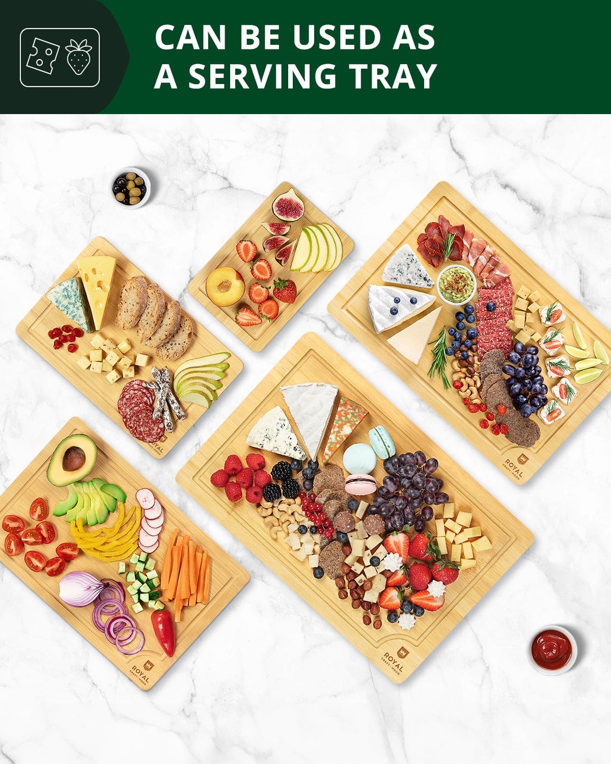 Royal Craft Wood 5-Piece Bamboo Cutting Board Set – Premium Organic Kitchen Essentials